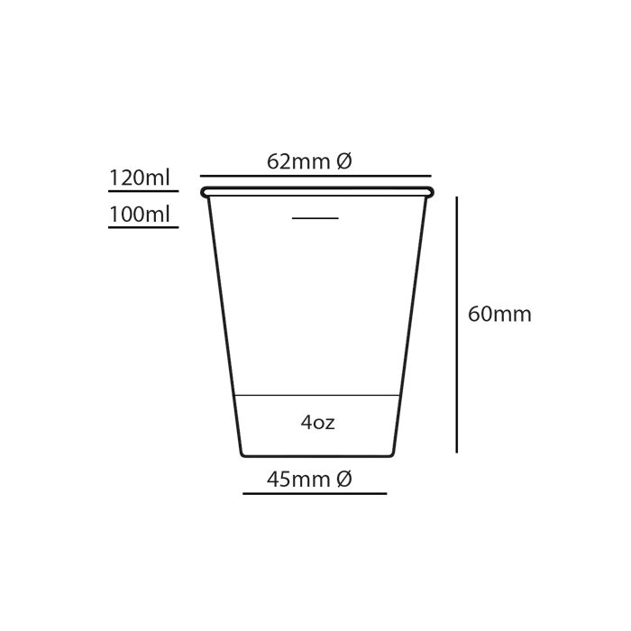 Koffiebeker suikerriet, PLA, 4oz, 120 ml, 62 mm Ø, 40 x 50 stuks