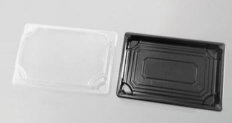 PS Sushi Trays HP-serie, zwart met OPS heldere deksel in combiverpakking.