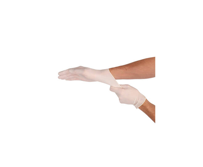 Handschoenen latex gepoederd Smal wit, lengte van 240 mm, doos 100 stuks.