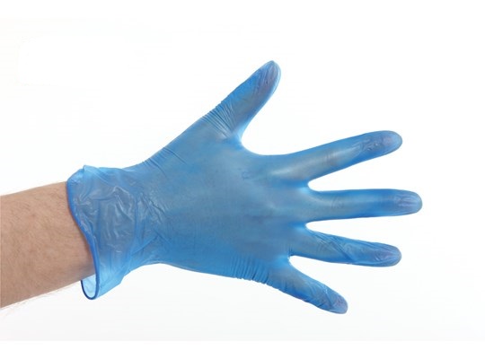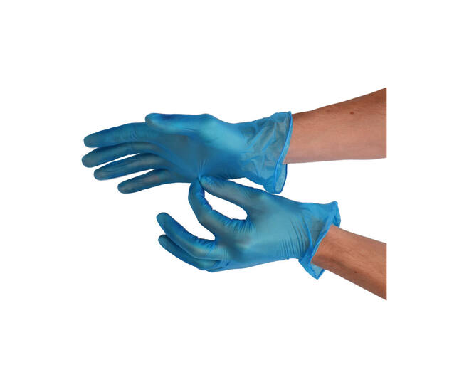 Handschoenen vinyl gepoederd Medium blauw, lengte van 240 mm, doos 100 stuks.