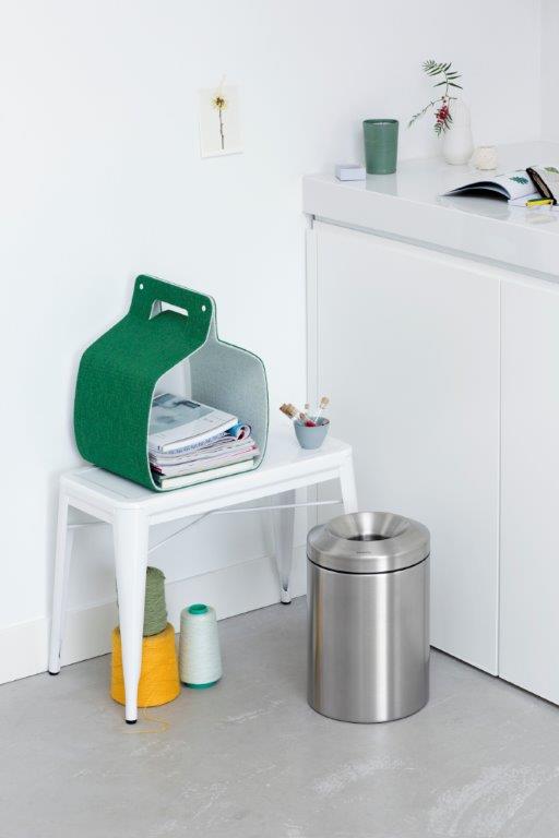 Vlamdovende papierbak 15 ltr, Brabantia , mat RVS, L 251 b 251 h 380 ø 251, mm