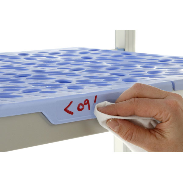 De rekken zijn voorzien van uitneembare en vaatwasserbestendige polypropyleen schappen en hebben geanodiseerde aluminium staanders en liggers.
