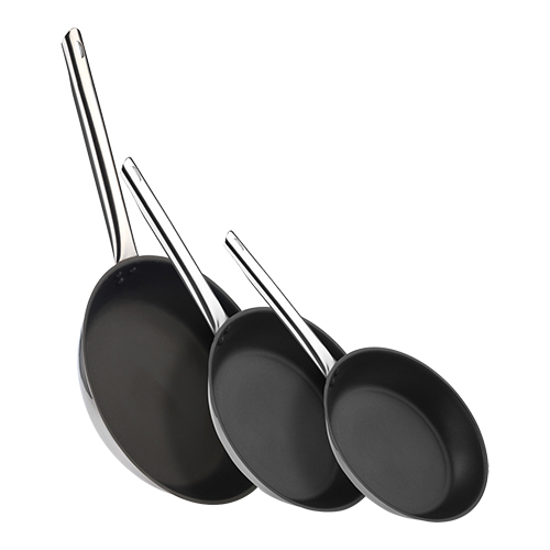 lyonnaiserpan, koekenpan, roestvrijstaal 18/10, zware uitvoering, voorzien van Excalibur teflon anti-aanbaklaag, geschikt voor alle hittebronnen (ook inductie).
