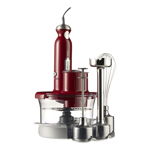 Staafmixer SET, kenwood, Kmix rood, garde,spindle, 1 liter cutterbak, met rvs mes en schijf voor plakjes of raspen.