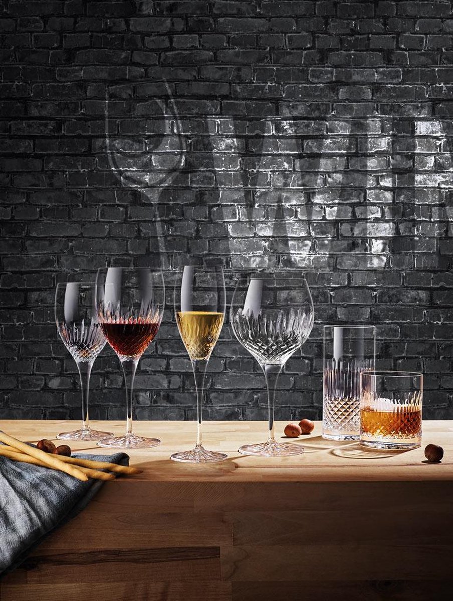 Diamante wordt geproduceerd in ultrahelder SON.hyx-glas. Het glas heeft een uitstekende transparantie en glans, gecombineerd met een extra weerstand tegen mechanische schokken en bestand tegen industriële wascycli. De stelen van de glazen zijn versterkt met een gepatenteerde anti-slijtagebehandeling die het glasoppervlak van de stelen versterkt met titanium, wat een permanente bescherming biedt tegen slijtage en de kwetsbaarheid van de steel aanzienlijk vermindert tijdens dagelijks gebruik.