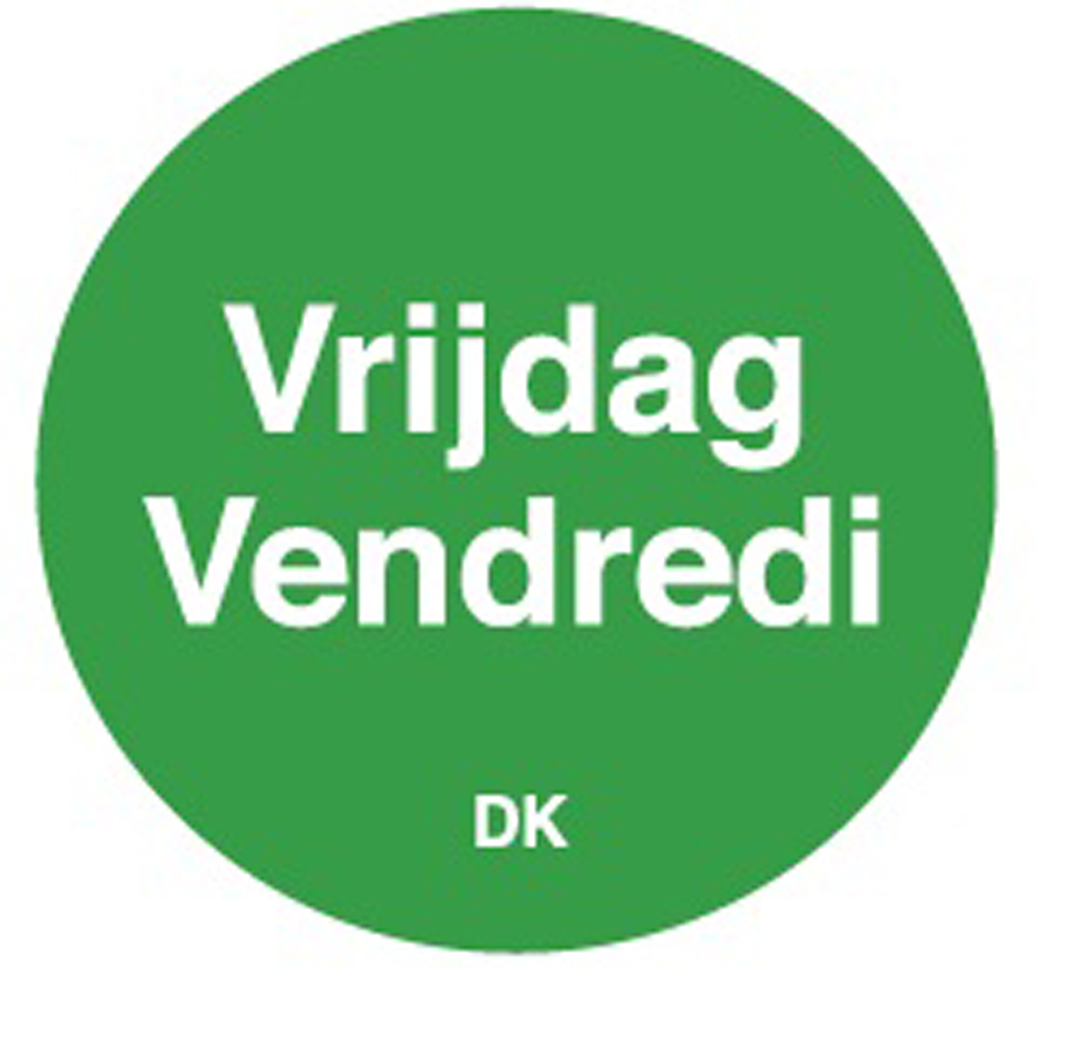 Permanente sticker vrijdag 19 mm 1000/rol, 1 rol
