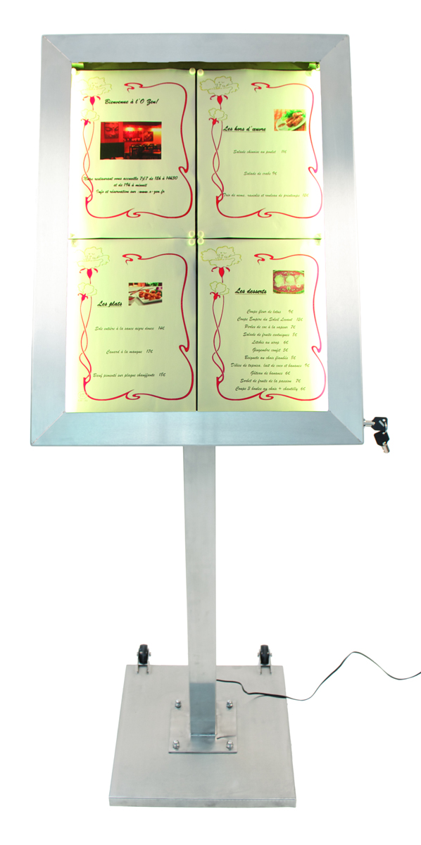 RVS menukaartdisplay 4x A4, 1 stuks