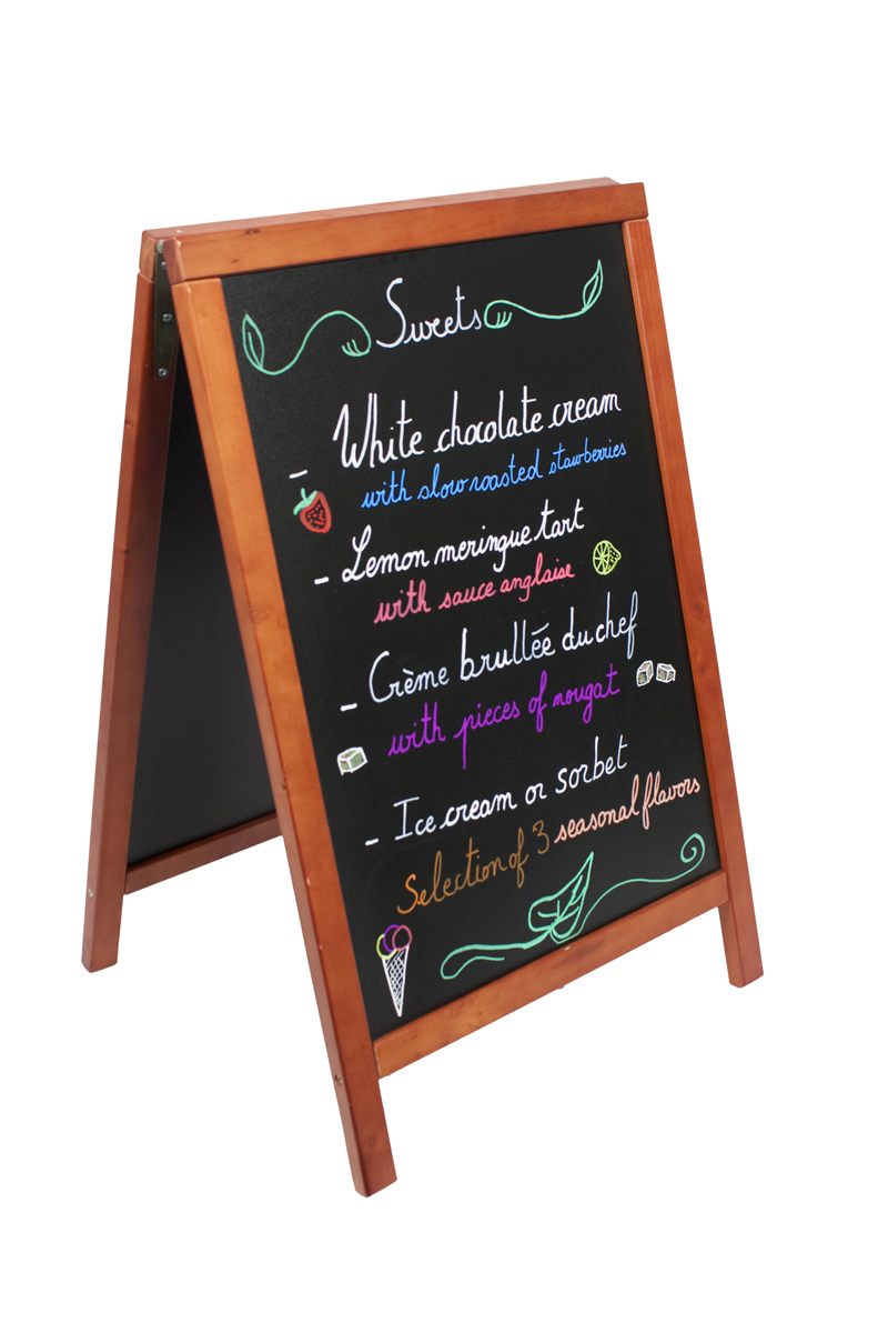 Stoepbord inklapbaar houten frame, aan beide zijden beschrijfbaar