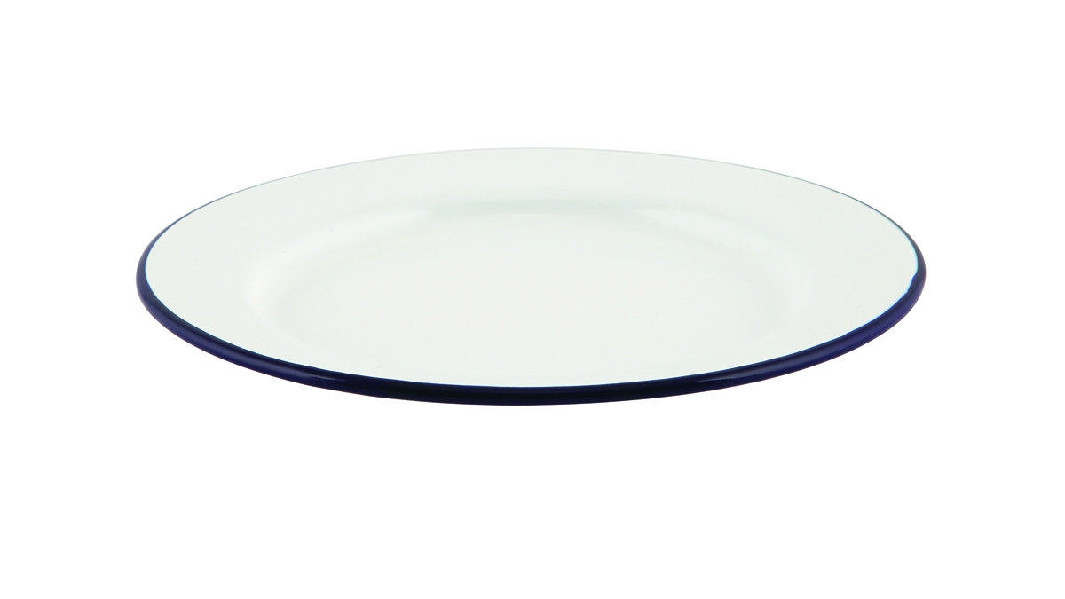 Emaille bord met blauwe rand 26 cm, 12 stuks