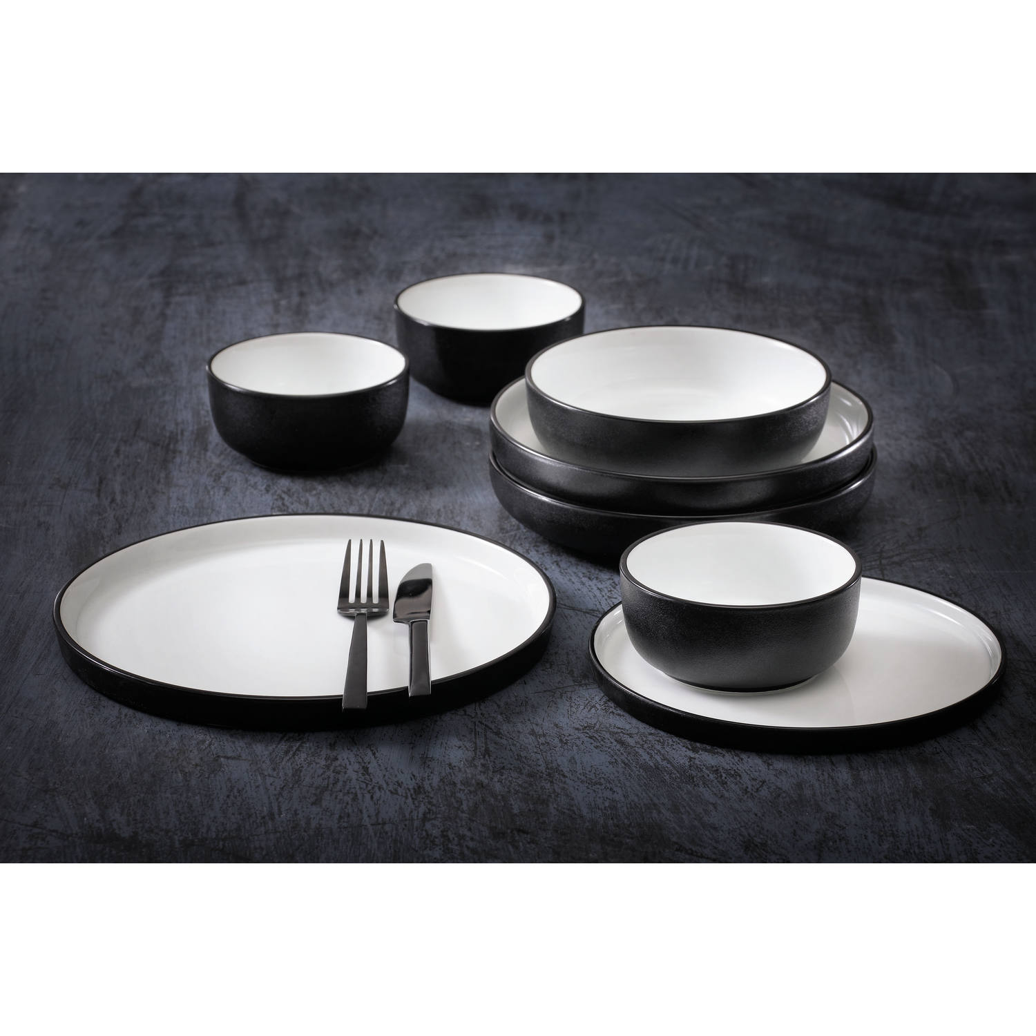 Maastricht Porselein Cosmic, bord 25 cm Zwart / wit, Porselein 6 stuks